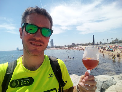 I amb el nostre 'beermut' ens escapem per l'espigó de la Mar Bella per a endinsar-nos en aquestes platges carregades de banyistes, fins no fa massa de barraques i gitanos que malvivien precàriament... nous temps, millors paisatges.