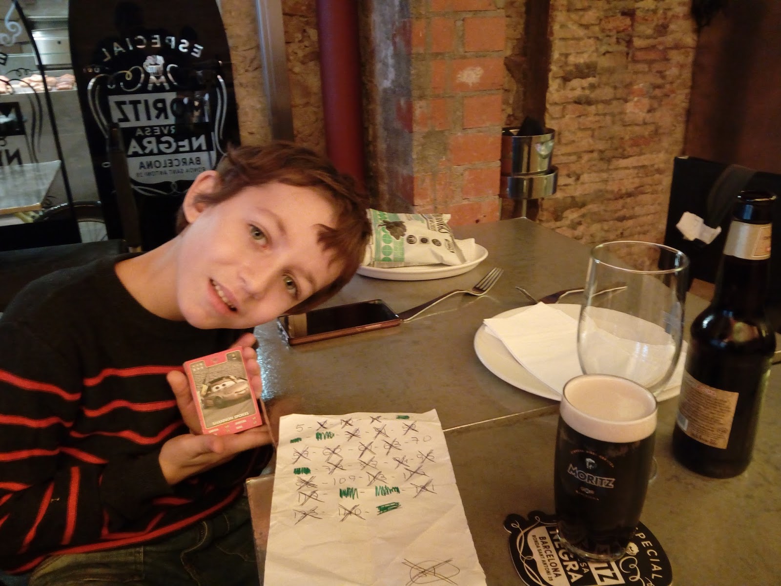 Ni li cal la clàssica llista, de tant segur com està en Martí dels cromos que li falten... Segueix recitant, ben ufanós en cada troballa, mentre s'afegeixen dues famílies més... consolidant un nucli insospitat de cercadors de Disney. I com qui no vol la cosa, entre els sobres que hem anat arreplegant de totes bandes i el botí d'avui... en Martí ha acabat la seva primera col·lecció de cromos: Disney-Pixar!